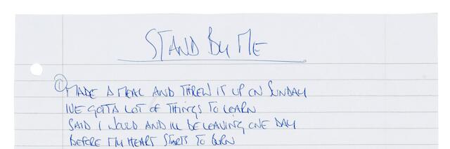 Bonhams Oasis Noel Gallagher S Handwritten Lyrics For Stand By Me Circa 1994 04