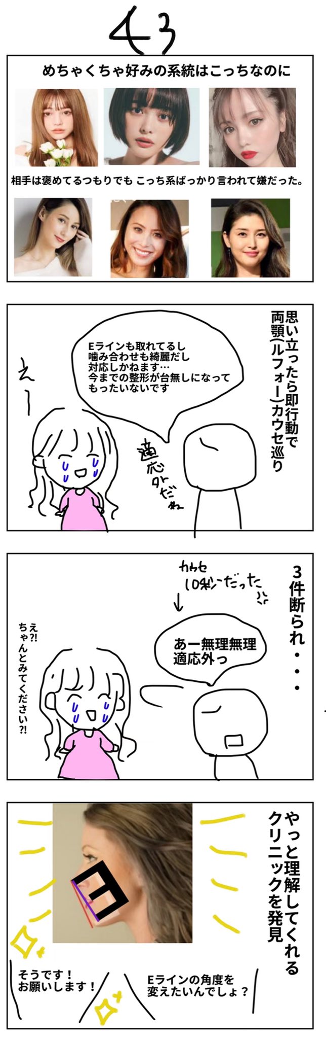 らび 雑な整形漫画 Dt わたしの整形ヒストリー100話まで 43整形 後悔してる人も多いけど ついにやって良かったno 1のルフォー 両顎 編に突入です ᵔᴥᵔ
