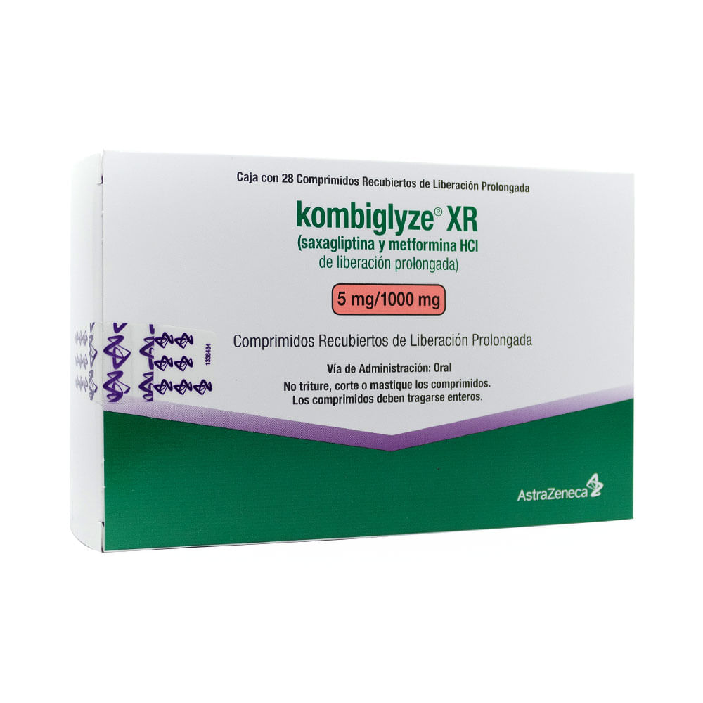 These coupons are free and can be used to save up to 80% on all medications. KOMBIGLYZE XR (saxagliptin and metformin HCl extendedrelease) (5/500•5/1000•25/1000 mg tablets) You may report side effects related to AstraZeneca products by clicking here Write your html here. La dosis máxima de KOMBIGLYZE ® XR es saxagliptina 5 mg/metformina liberación prolongada 2,000 mg, administrada como dos tabletas de 25 mg/1,000 mg una vez al día No se han realizado estudios que examinen específicamente la seguridad y la eficacia de KOMBIGLYZE ® XR en pacientes tratados previamente con otros medicamentos.