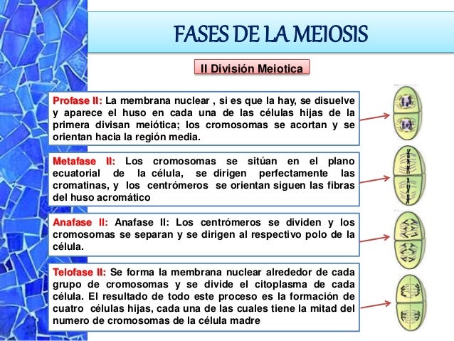 En esta fase es propiamente cuando se produce la partición de la célula y se desarrolla bien la mitosis o la meiosis Diferencias entre mitosis y meiosis En la fase de la división es cuando ocurre o bien la mitosis o bien la meiosis Mitosis Es la típica división celular de una célula dando origen a dos copias Al igual que ocurre con el ciclo, la mitosis también se ha dividido tradicionalmente en diferentes etapas profase, metafase, anafase y telofase. Fases de la Mitosis y Meiosis4 Celulas qu e sufren mitosis o meiosis5 Caracteristicas y diferencias entre mitosis y meiosis6 Recombinacion 7 Diferencias entre ADNcromatidacromatinacromosoma es BIOLOGÍA ,PLIS es para hoy doy coronita a la mejor respuesta, hasta los sigo si quieren pero plis aiudenme. Meiosis I y Meiosis II Etapas de la meiosis La meiosis tiene lugar en varias etapas, y esta división del núcleo de algunas células eucariotas conduce a la formación de 4 núcleos con un número medio reducido de cromosomas, es decir, pasando generalmente de un estado diploide a un estado haploide La Meiosis es seguida por la formación de células haploides que son, dependiendo del caso.